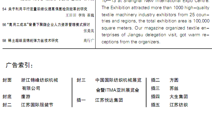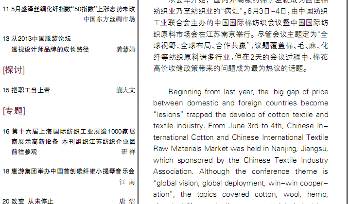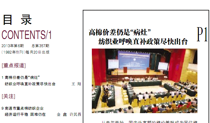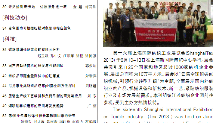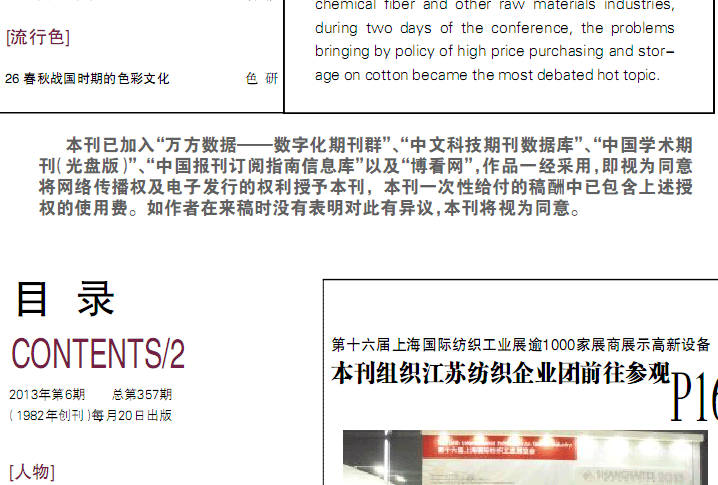 中國雜志網 >> 《江蘇紡織》 雜志 >> 2013年6期雜志目錄