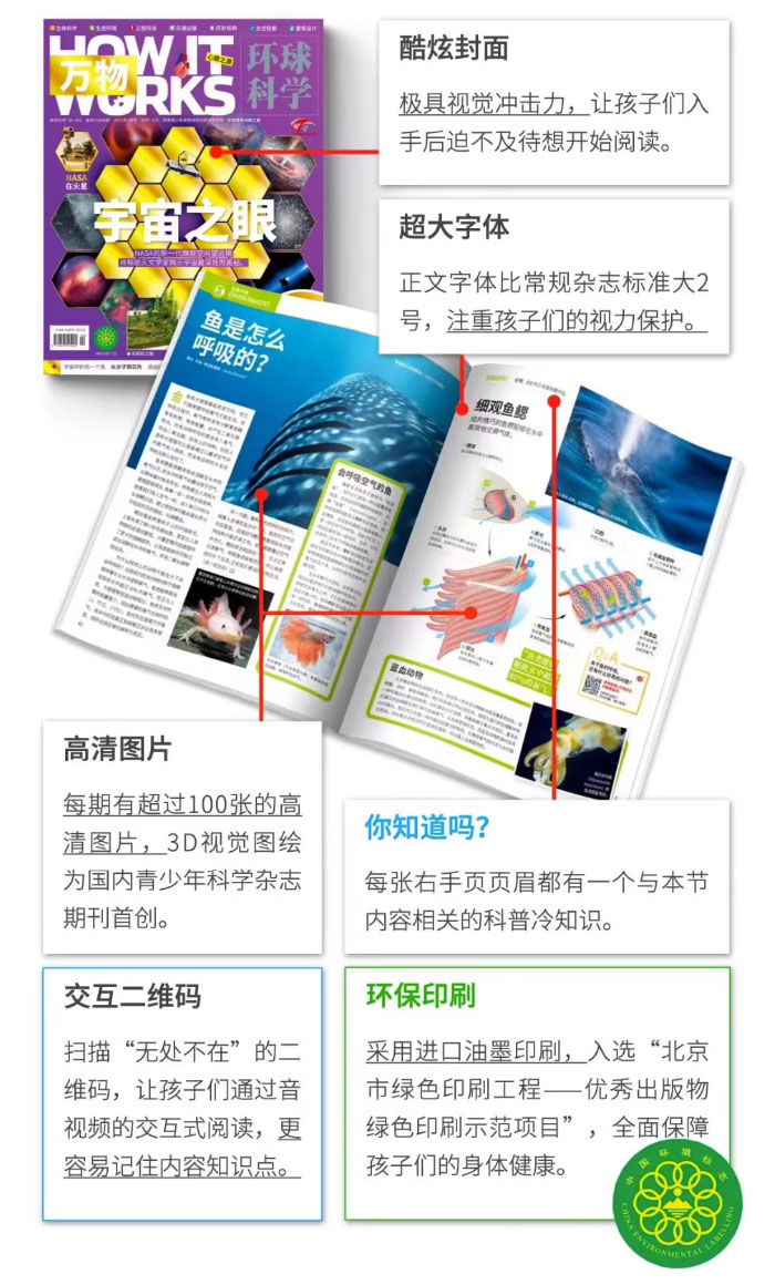 世界級科學團隊和3D視覺團隊聯手制作,是萬物雜志大的特色之一,每期超過100幅的3D視覺科學圖片,將復雜的原理變成觸手可及的三維解構與知識鏈條,對標中小學課程中重要的科學知識點,啟迪孩子對科學和工程的熱愛。