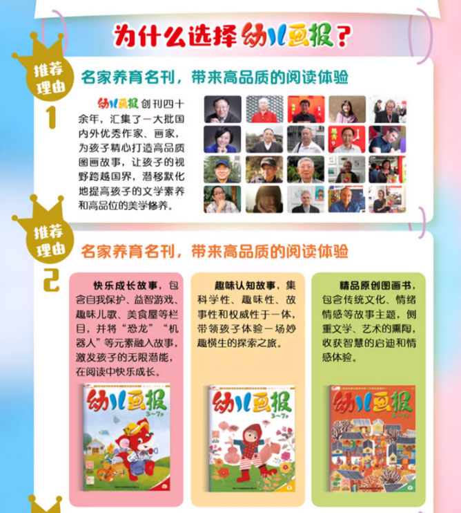 《幼兒畫報》成為國家教育部推薦的優秀幼兒期刊,成為中國郵政報刊發行網惟一推薦的幼兒期刊,并榮獲中國優秀少兒報刊金獎,在同類期刊中獲國家新聞出版總署最高品質認證。其月發行量已超過百萬,穩居同類期刊首位。