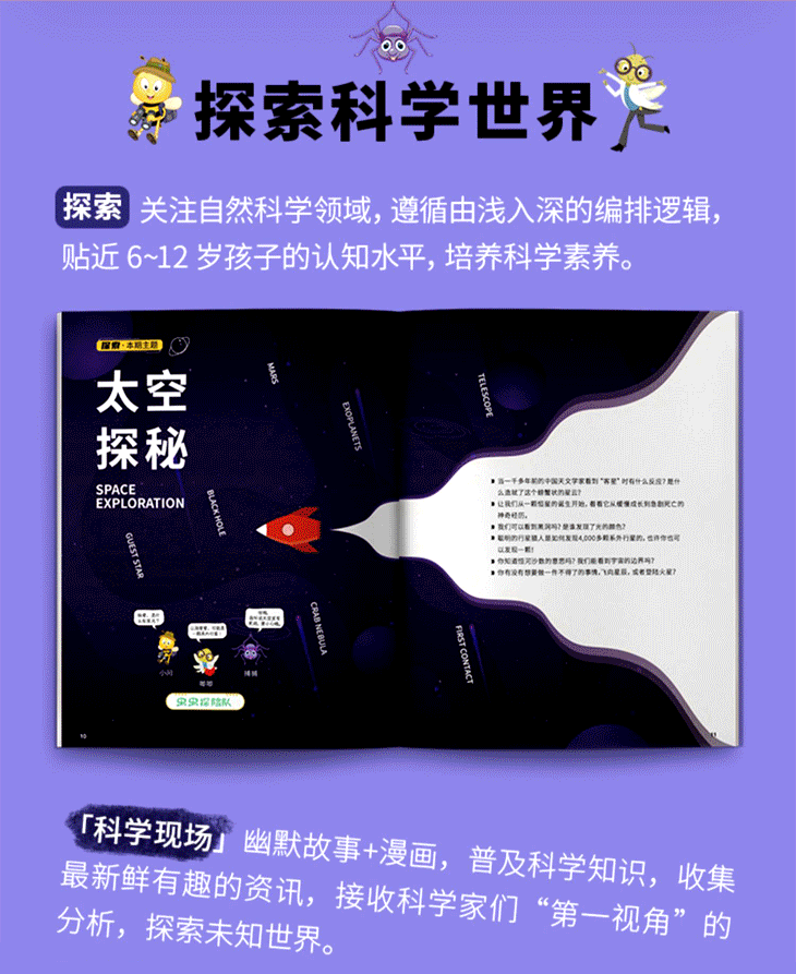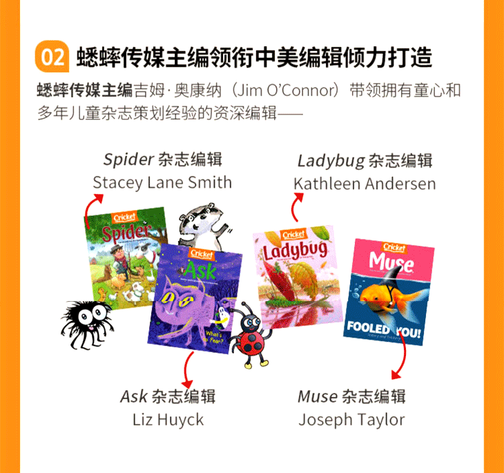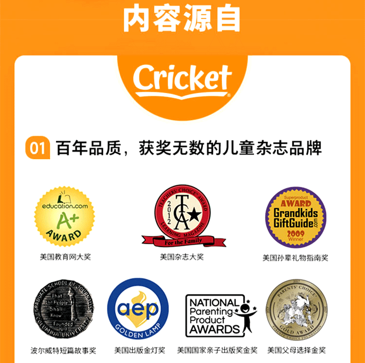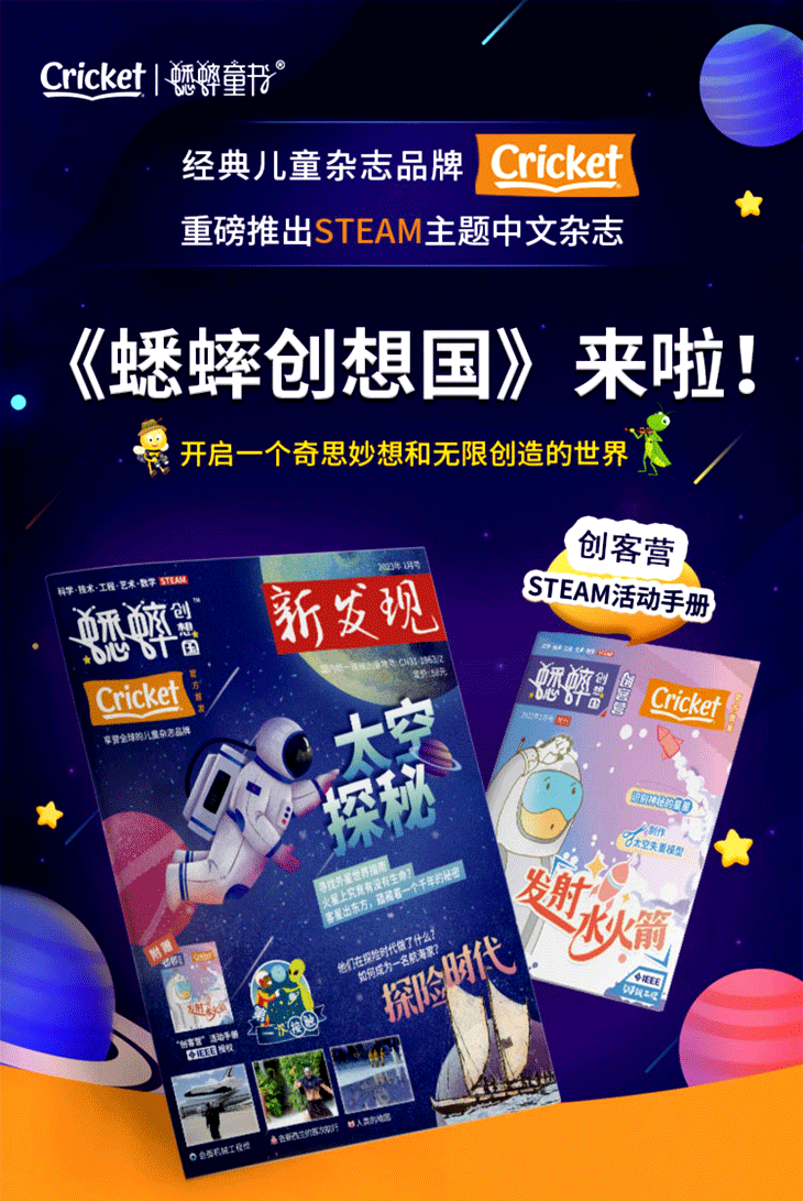 自然科學知識由淺入深,培養科學素養 “探索”版塊關注自然科學領域,從探索和觀察周圍的世界開始,鼓勵孩子們主動發現問題,出發去尋找答案。由淺入深,貼近不同年齡孩子的認知水平。科學現場用漫畫和輕松幽默的故事給6-9歲的孩子普及科學知識。抵達科學發現的第一現場,收集新鮮有趣的資訊和來自科學家“第一視角”的分析,一起探索未知。 藝術人文交會,架起現實與想象的橋梁 “旅程”版塊涵蓋歷史人文和文學藝術領域,有精彩的冒險和奇遇故事,也會和孩子們探討人和世界關系的深刻內容,在紀實與虛構之間自由穿梭,激發孩子的創造力和想象力。 IEEE授權工程設計活動,培養STEAM小創客 “蟋蟀創想國”致力于培養快樂、獨立、好奇的學習者,鼓勵孩子從多重視角發現問題,分析數據,理解各種想法之間的聯系,從而創造性地解決問題。每期雜志附贈活動手冊《創客營》,當小讀者在閱讀每期雜志并與《創客營》互動時,可以學習到STEAM跨學科領域的關鍵技能。 配套原版英語朗讀音頻+線上互動拓展 每期雜志精選了5-6篇文章,提供英文原版文章和原汁原味的英語朗讀音頻,讀者可以一邊看英文文章,一邊聽原版英語朗讀音頻,感受地道發音,學習朗讀技巧,提升英文閱讀能力和聽力水平。